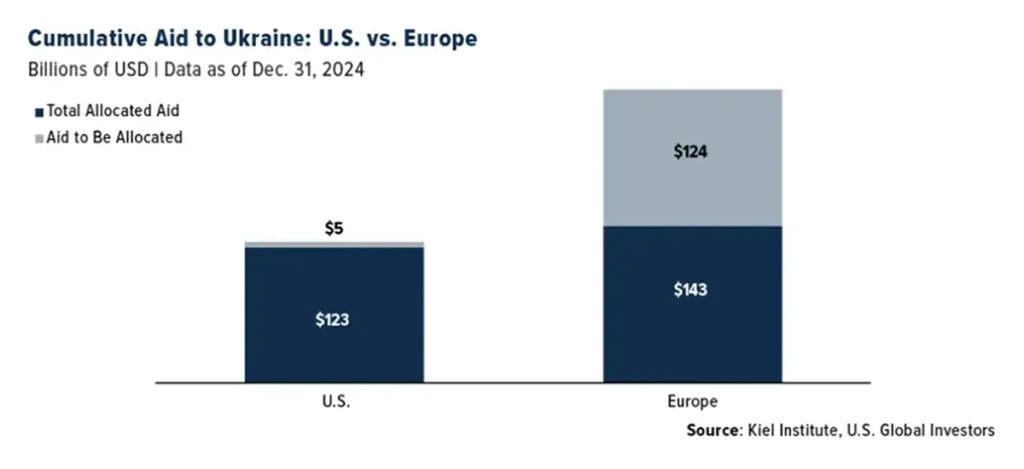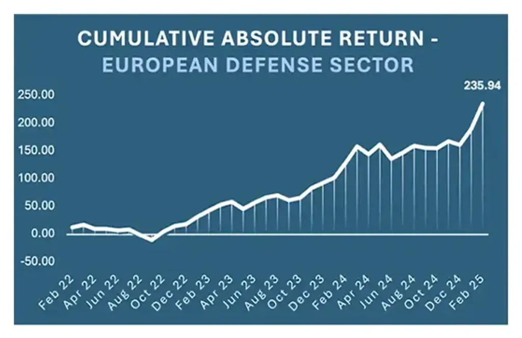 The current geopolitical situation in Ukraine is creating a strong demand for increased military spending across Europe. The United States contributes nearly 40% of global military spending and allocates a larger portion of its GDP to defense compared to most other countries. Although the US has contributed over $120 billion to Ukraine since the war with Russia began three years ago, that support is now declining with the change in administration. As the US reduces its involvement, Europe is stepping up to offer continued support to Ukraine in its fight against Russia, pledging further assistance. The rise in the European defense sector is fueled not only by the geopolitical situation surrounding Ukraine but also by a shift in European defense policy.