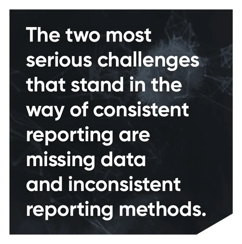 Consistency is paramount in accurate reporting. The same methodology and language need to be used across companies, funds, portfolios, and benchmarks. There must be a simple way to compare data from the main providers of sustainable fund metrics such as Trucost, Morningstar and ECPI. The two most serious challenges that stand in the way of consistent reporting is missing data and inconsistent reporting methods. Without a solve for these challenges, it is impossible to meet the expanding data and analytics needs of the industry.