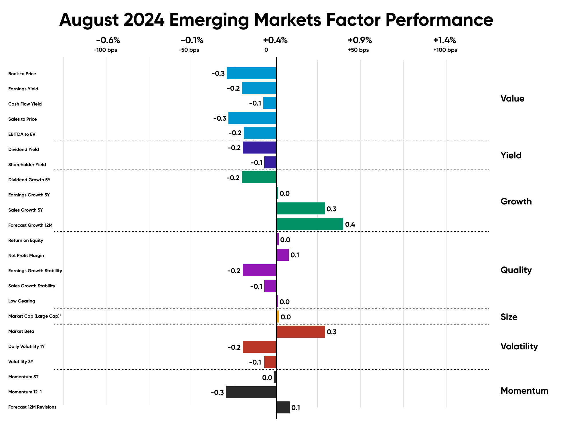 In July, the factor trend in Emerging Markets favoured Growth, with Forecast Growth 12M outperforming the market by 40 bps. Similar to the U.S. and UK, the Value underperformed. Quality observed a mixed performance, with return on equity and net profit margin surpassing the market.