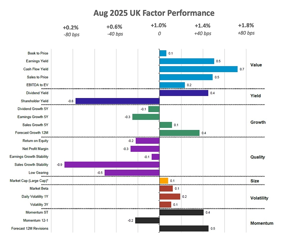 Figure 5: August 2025 UK Factor Performance (sector adjusted)
