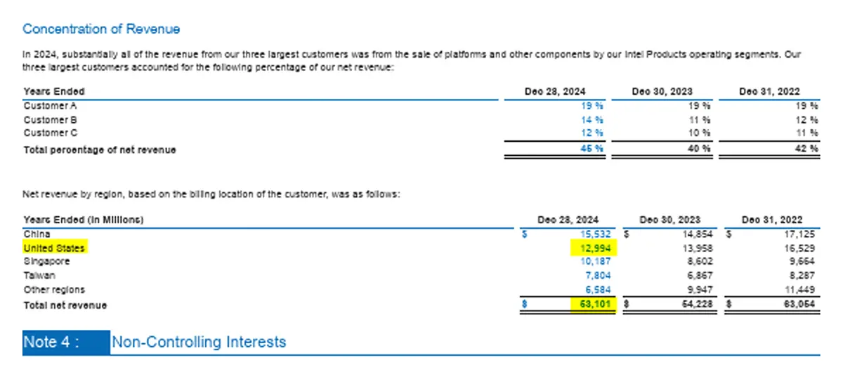 Below is an example of how this is calculated: Intel's latest annual 10-K showed that only 24.47% (e.g., $12,994 billion/$53,101 billion) of its revenue came from U.S. customers. That means more than 75% of its business is export-driven.