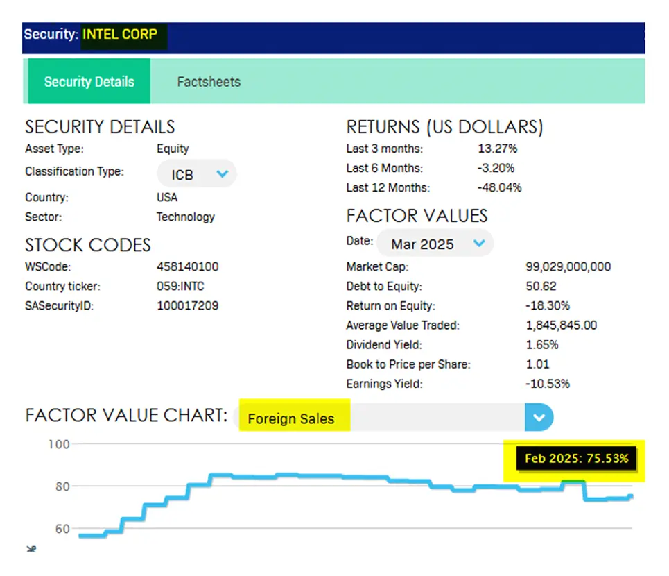 As expected, the portfolio has a significant negative tilt to foreign sales.