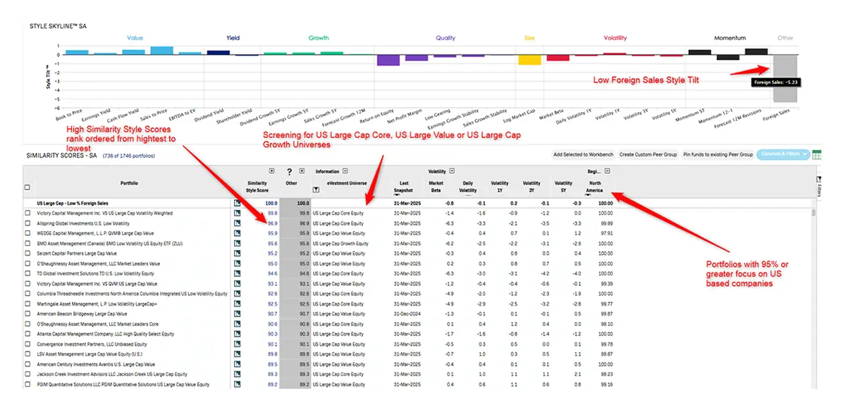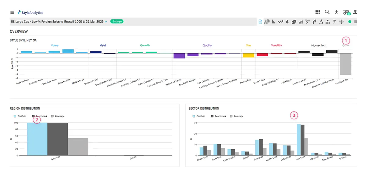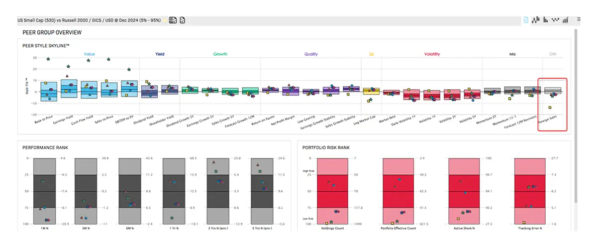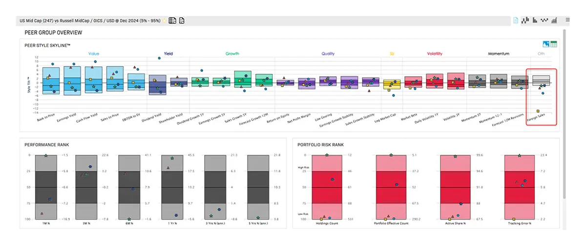 Whether or not the global trade environment stabilizes in the near term, Style Analytics offers a structured framework for analyzing domestic vs. foreign exposure as a key factor within the US market. Through portfolio construction, peer analysis, and style evaluation, it becomes evident that domestic orientation carries implications not just for volatility and valuation but also for participation in the recent mega-cap-led rally.