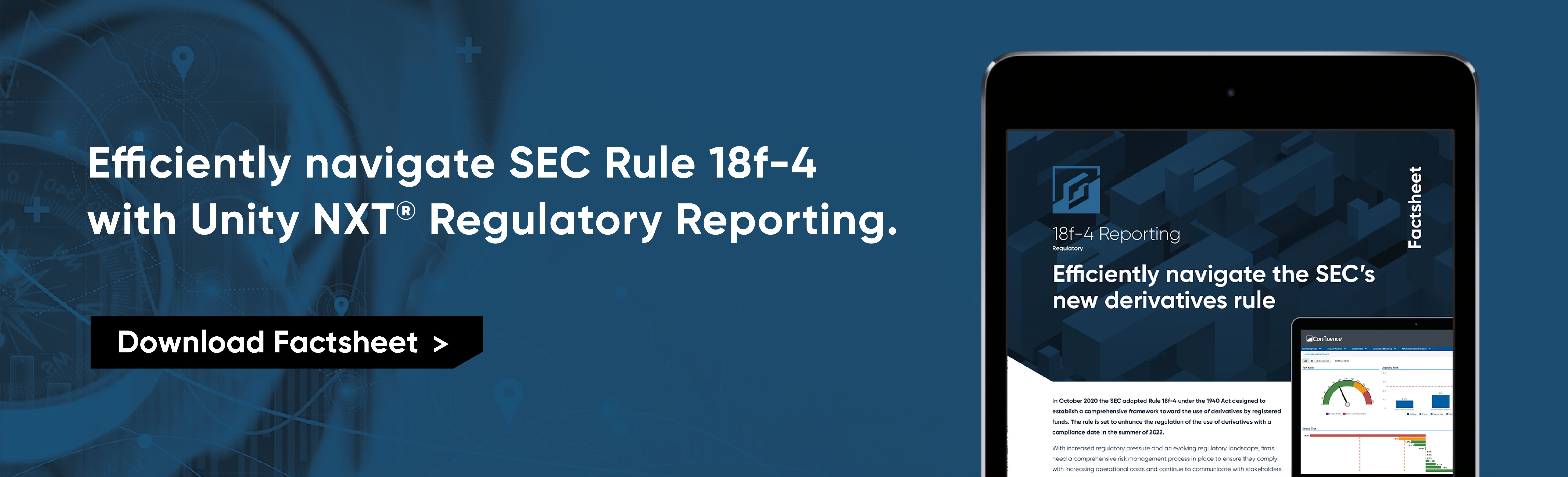 The multi-strategy firm which already uses Confluence’s Unity NXT Regulatory Reporting platform, will implement Confluence’s Revolution platform to provide a comprehensive solution compliant with the SEC’s updated 18f-4 framework requiring heightened disclosures and monitoring of derivatives exposure. With a focus on risk and regulatory oversight, this enhancement will provide the firm with a comprehensive suite of services including back testing, stress testing, board reporting, derivative and risk monitoring, and more.