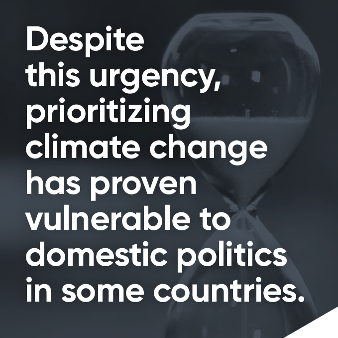 Despite this urgency, prioritizing climate change has proven vulnerable to domestic politics in some countries. Prime Minister Rishi Sunak of the UK, which hosted COP26 in Glasgow, announced through a spokesperson on 27 October that he would not attend COP27 because he had domestic priorities, before changing his mind a few days later after heavy criticism. In the US, President Biden’s commitment to the Paris Agreement and COP27 comes only after his predecessor, Donald Trump, had orchestrated a US withdrawal from the Paris Agreement (rejoined when Biden took office). Meanwhile, some major G20 economies such as India, China, Australia and Canada are not sending their heads of state to COP27, as of this writing.