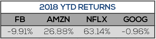 Fig. 2: 2018 YTD returns highlighting Facebook drawdown