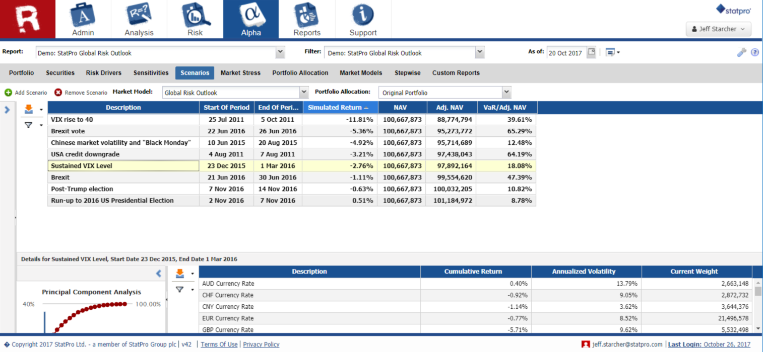Fig. 3: Scenarios pane within StatPro Alpha module