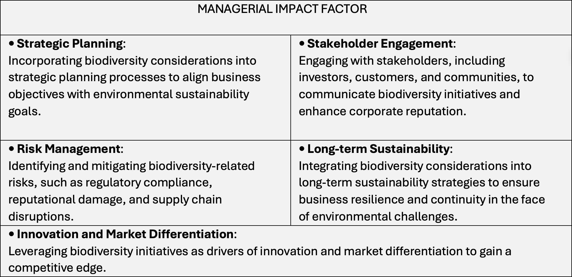 - The COVID-19 Pandemic: Companies with strong ESG strategies, including biodiversity, outperformed their peers during the market downturn.