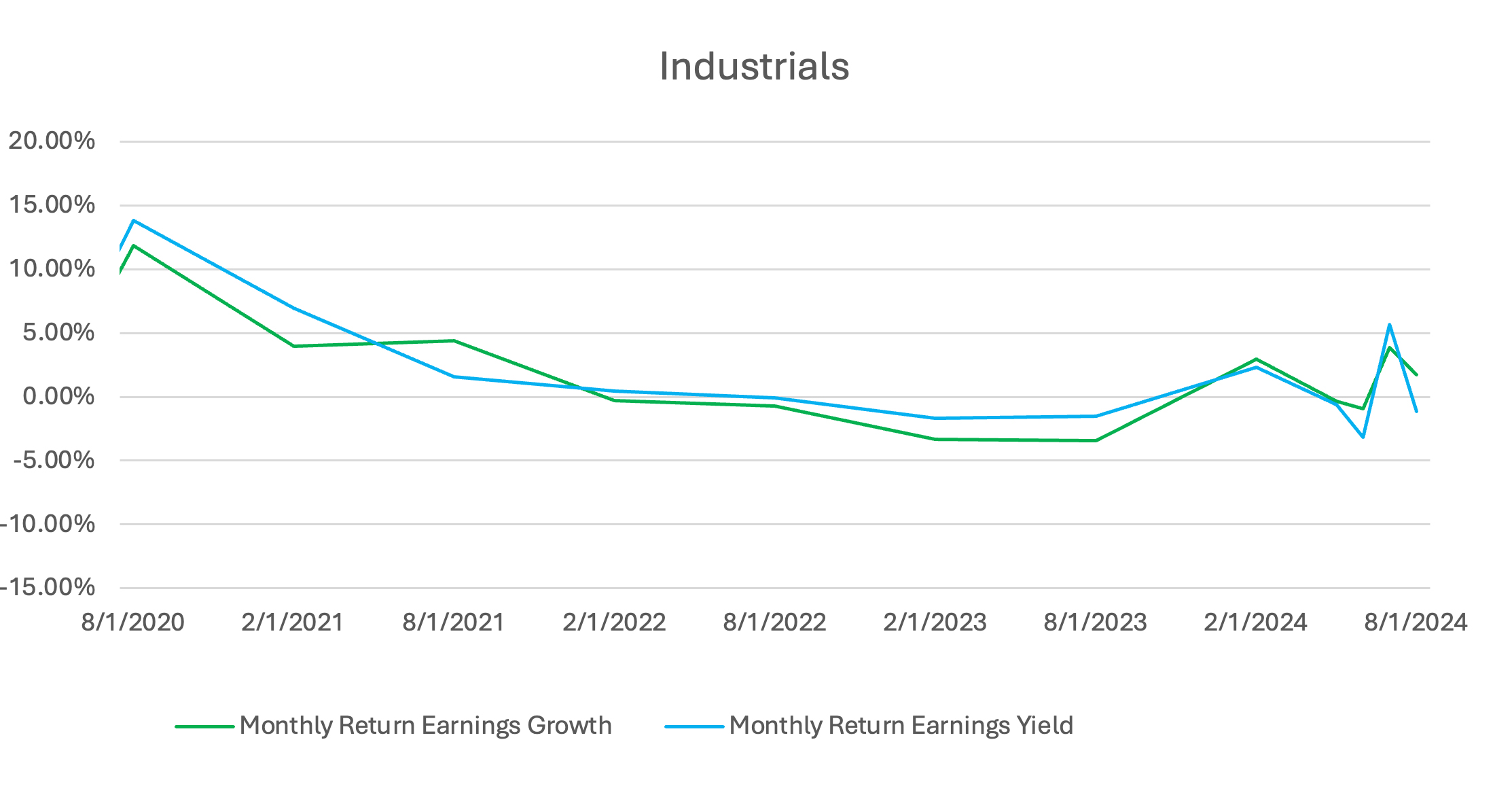 The Japanese manufacturing industry has a lasting impact on the global economy, known for its exceptional production standards and as the origin of several influential management and operational philosophies. Investors have viewed the industrials sector as relatively neutral in the past, characterized by consistent performance from both earnings growth and earnings yield securities. The rise in interest rates increases the cost of doing business, lowers capital expenditures and investments by companies, and diminishes consumer spending. Following the significant increase in both earnings yield and earnings growth performances in June, the interest rate changes announced in July resulted in a steeper decline for companies with stable earnings yield.
