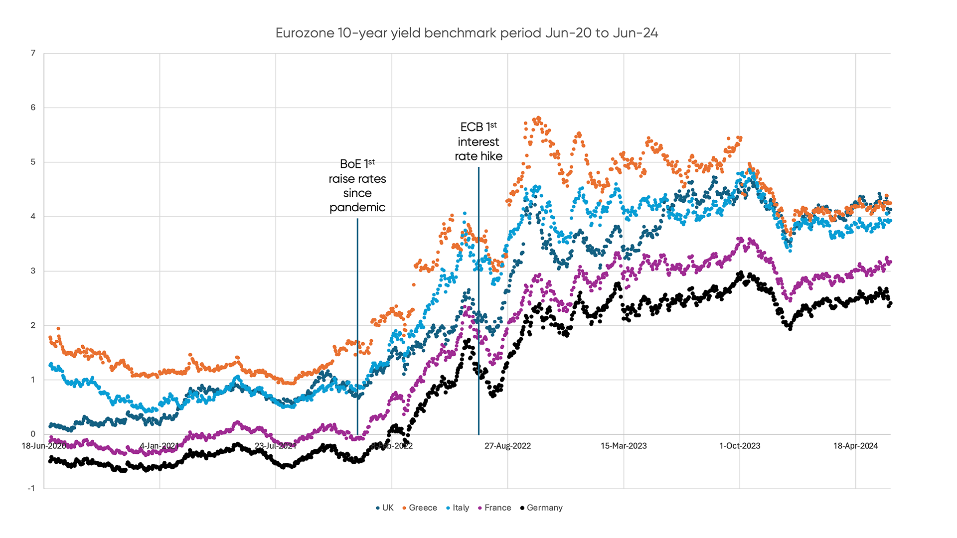 The BoE vs. ECB: 10-Year Bond Rates 20-24 Comparison: