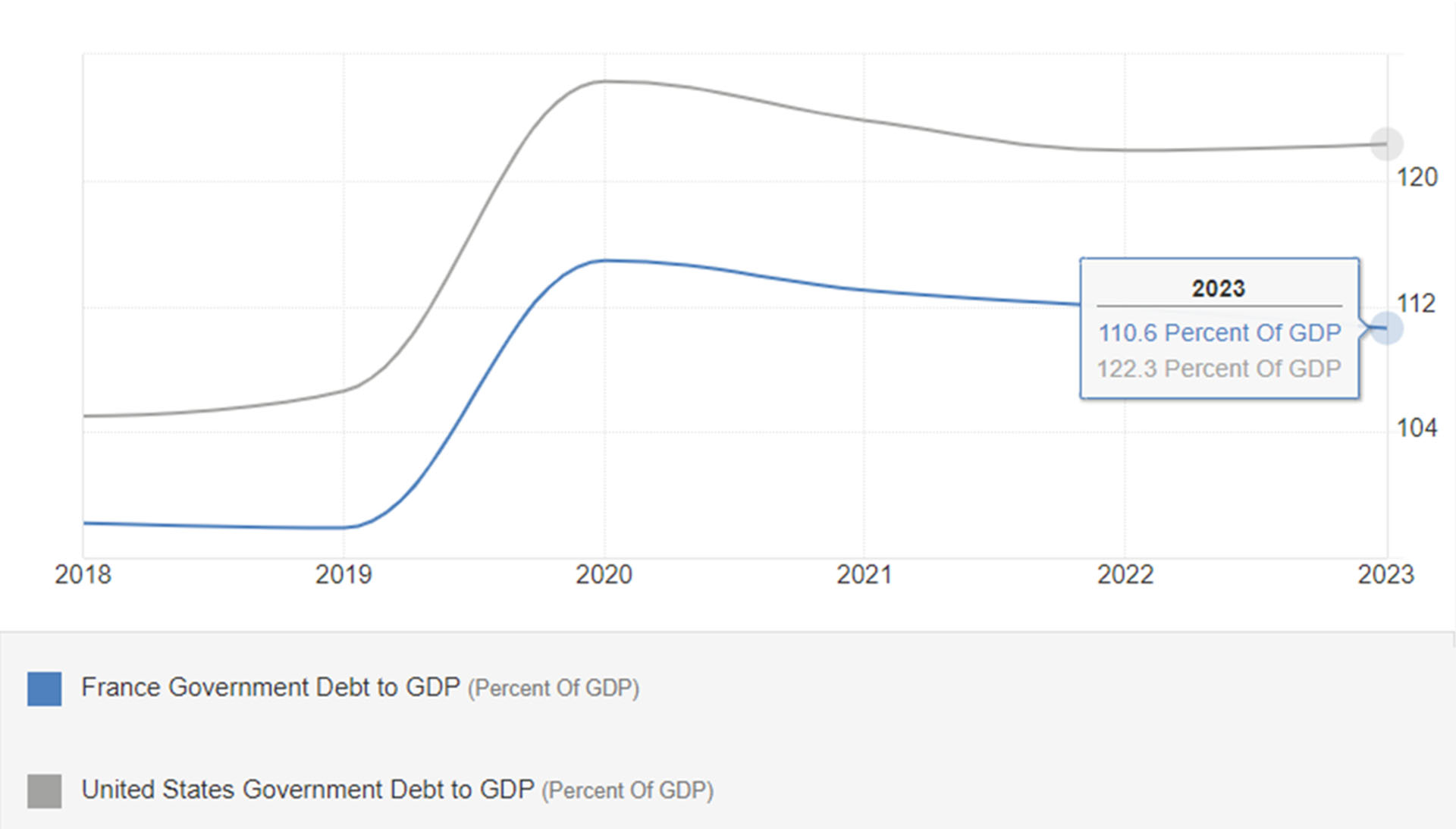 Figure 7: France US Comparison Government Debt to GDP.