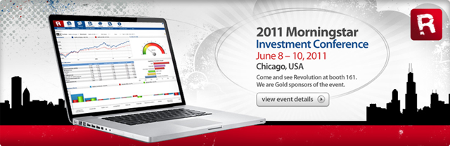 It’s nearly 100 degrees in Chicago, and things are heating up inside the McCormick Place Convention Center, as we get ready to unveil Revolution cloud based portfolio management software to over 1000 attendees at Morningstar’s annual conference. The keynotes kick off at 3:00 pm and the show floor opens at 5:30, so if you’re at Morningstar, you can catch a first glimpse of Revolution in action at Booth 161, front-and-center in the exhibit hall.