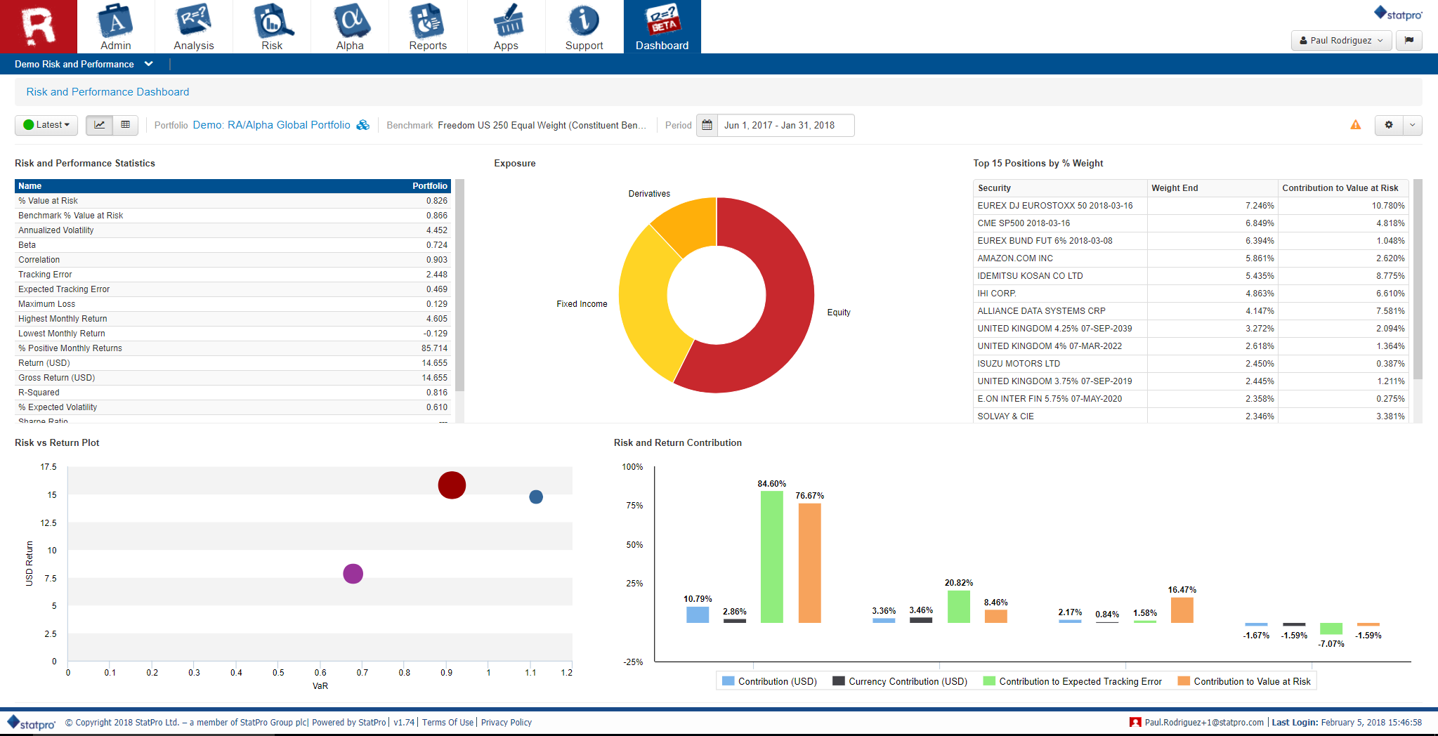The StatPro Revolution platform meets the needs of new school asset managers by providing them with the ability to create risk frameworks from a wide selection of risk and performance analytics, delivered in a single cloud-based platform, in a flexible manner.