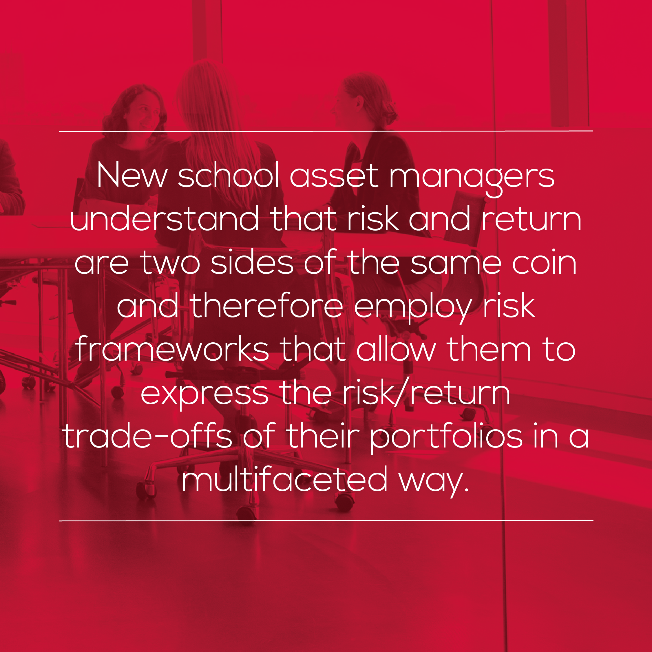 Good asset managers can speak in depth about the return expectations of their portfolio in the scope of the current macro-environment. However, fewer managers can express themselves in the same depth about the associated market risk expectations of their portfolio. New school asset managers understand that risk and return are two sides of the same coin and therefore employ risk frameworks that allow them to express the risk/return trade-offs of their portfolios in a multifaceted way.