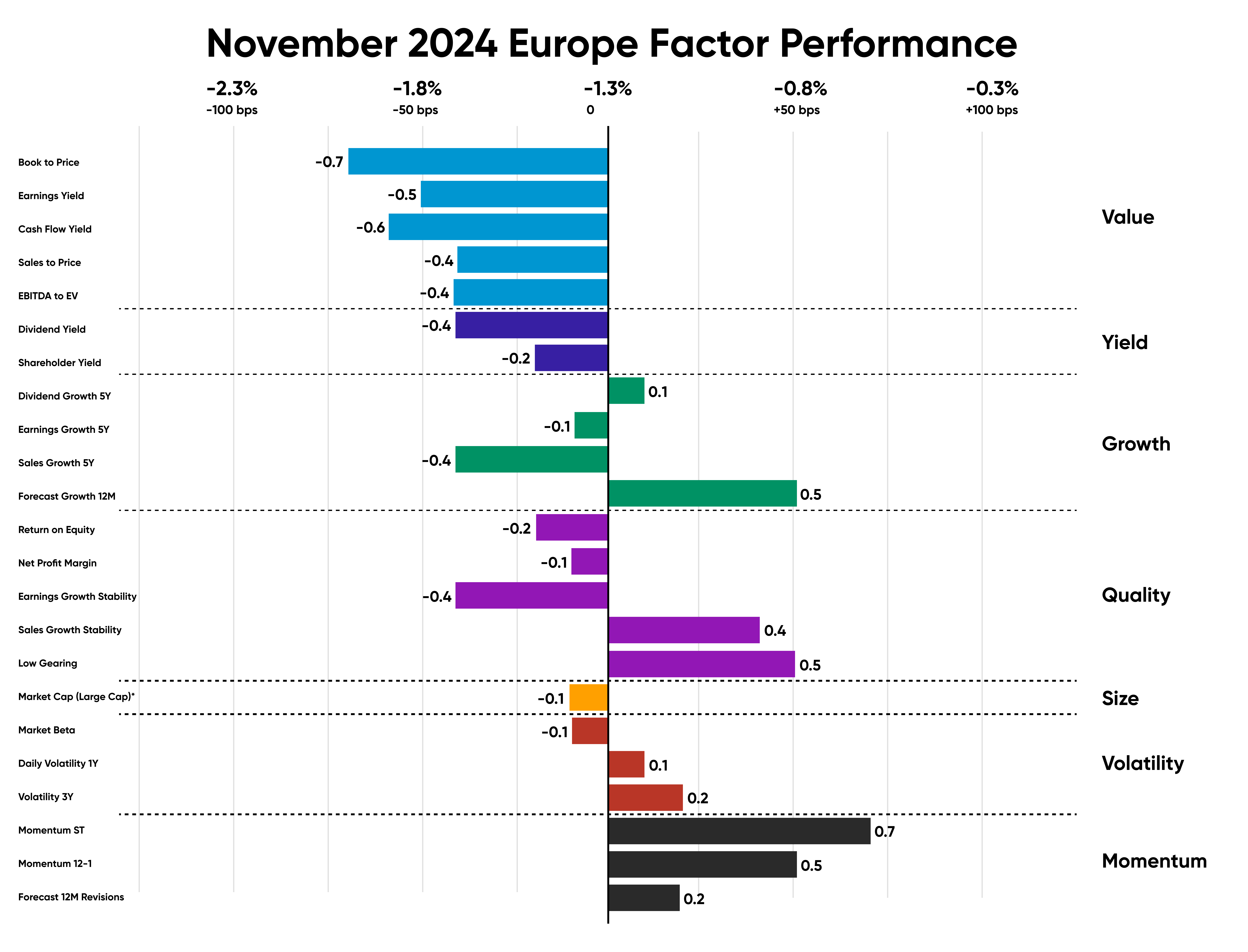 Figure 3: Nov 2024 Europe Factor Performance (country and sector adjusted)