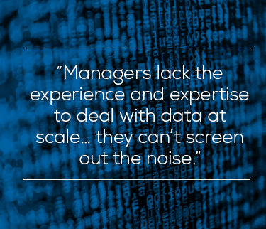 The sheer scale of data now flowing into asset managers’ performance measurement systems is unprecedented. But managers lack the experience and expertise to deal with data at scale and therefore find it very difficult to pinpoint the information that is valuable. They can’t screen out the noise.
