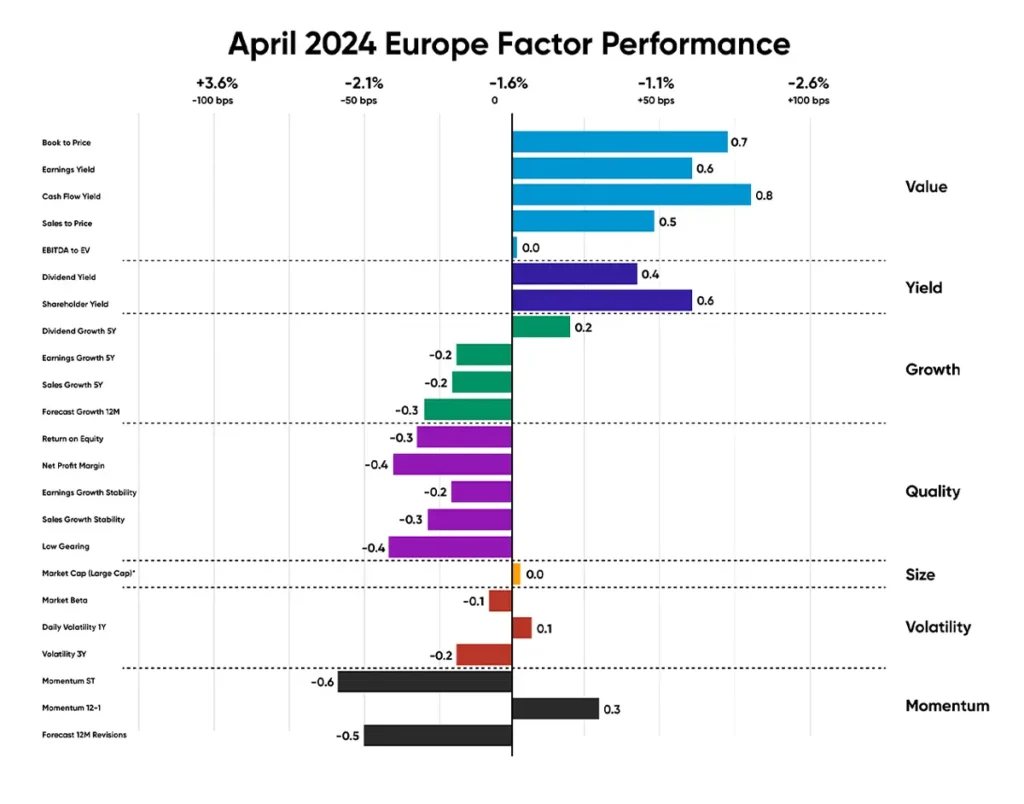 - Europe: Value, Yield and Size outperformed