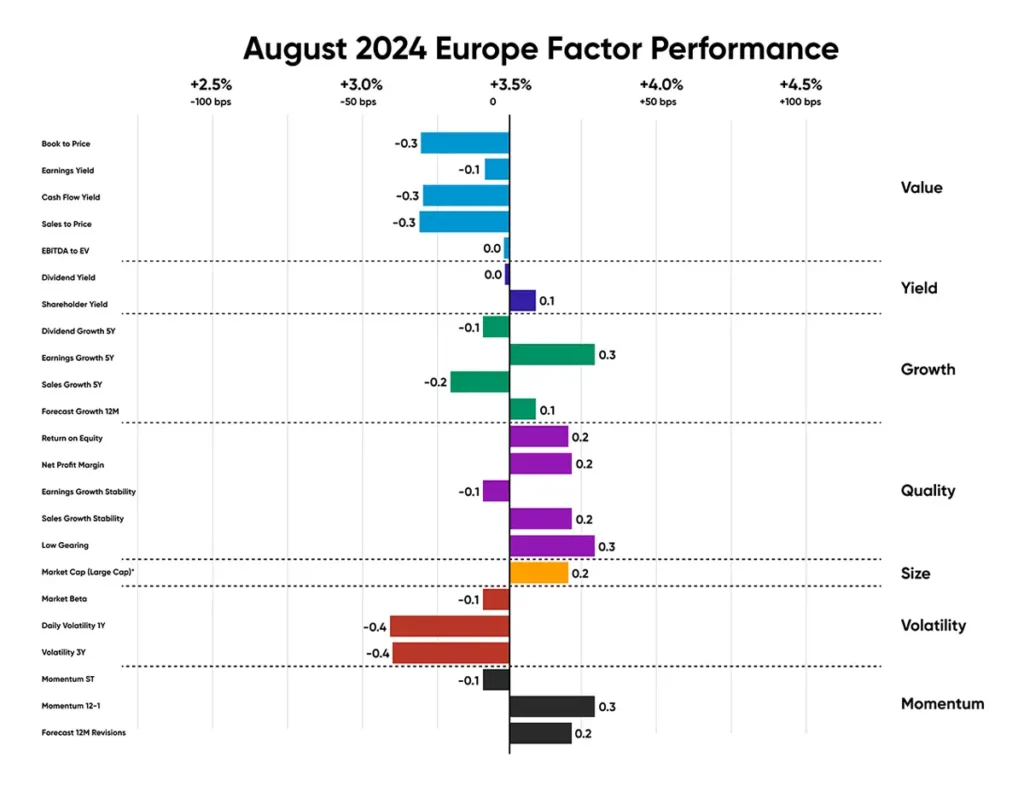 In Europe, much like in the US, Quality and Size outperformed the market, while Value and Volatility lagged behind.