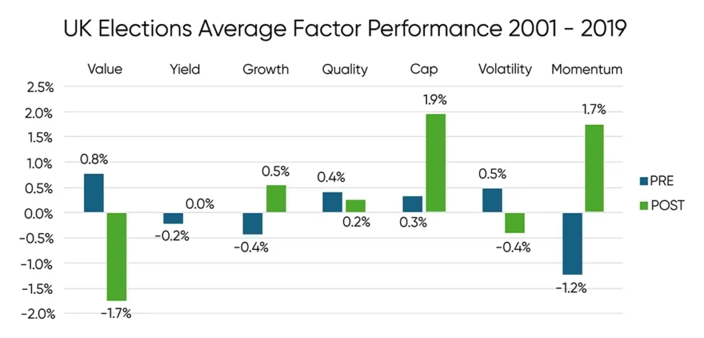 With the UK general election scheduled for July 4th 2024, we conducted a historical analysis of factor performance in the periods surrounding previous elections. In total, we analyzed six UK general election periods between 2001 and 2019, examining how factors performed in the six months leading up to and following the vote.