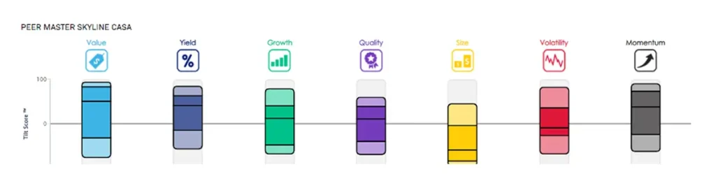 In Figure 2 below, we show the Style Analytics Master Skyline for the same above median-performing products from the IM Emerging Markets Peer Group. The leading factors driving active manager performance were Value, Yield, Quality, and Momentum, as my colleague Alex Lustig noted in the 2023 Factor Performance Analysis report. In Emerging Markets, the triumvirate of Value, Yield, and dividend growth, aka the “three musketeers”, continue to dominate throughout December, Q4, and 2023, mirroring patterns from past years.