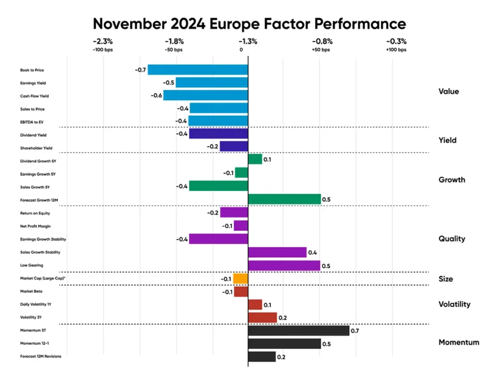 Figure 3: Nov 2024 Europe Factor Performance (country and sector adjusted)