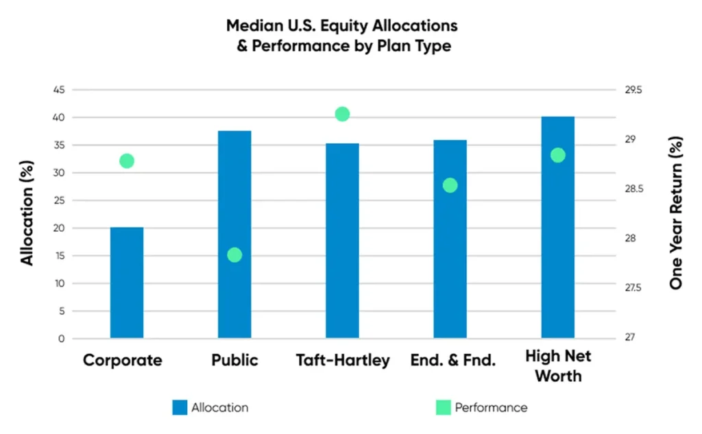 Figure 5: Median U.S. Equity Allocation & Performance by Plan Type.