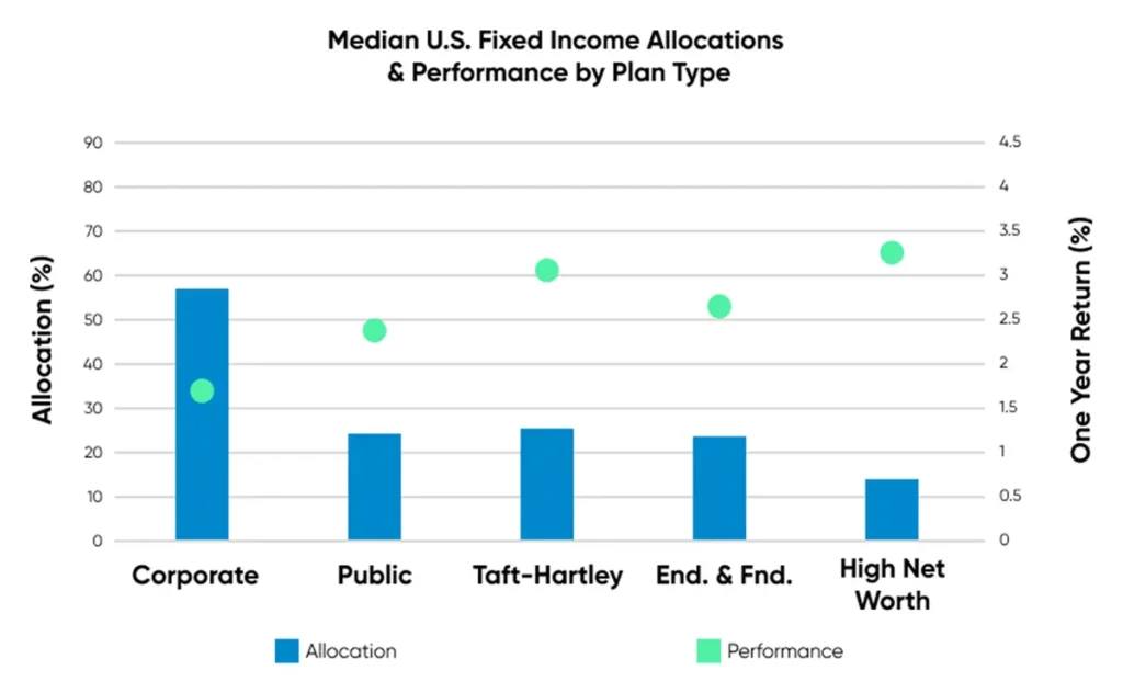 Figure 7: Median U.S. Fixed Income Allocation & Performance by Plan Type.