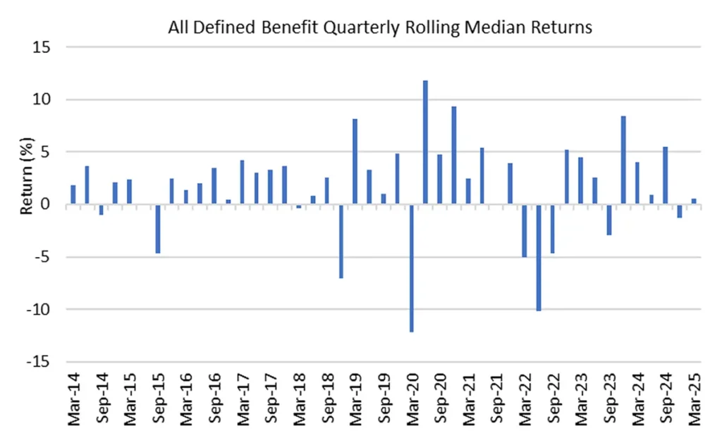 The Q1 2025 Confluence Plan Universe Report – the industry’s most granular analytics tool for plan sponsors with data sourced directly from over 4,000 institutions – reported a relatively flat quarter for defined benefit plans.