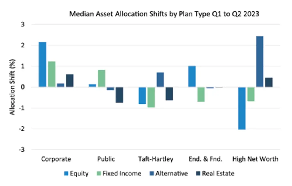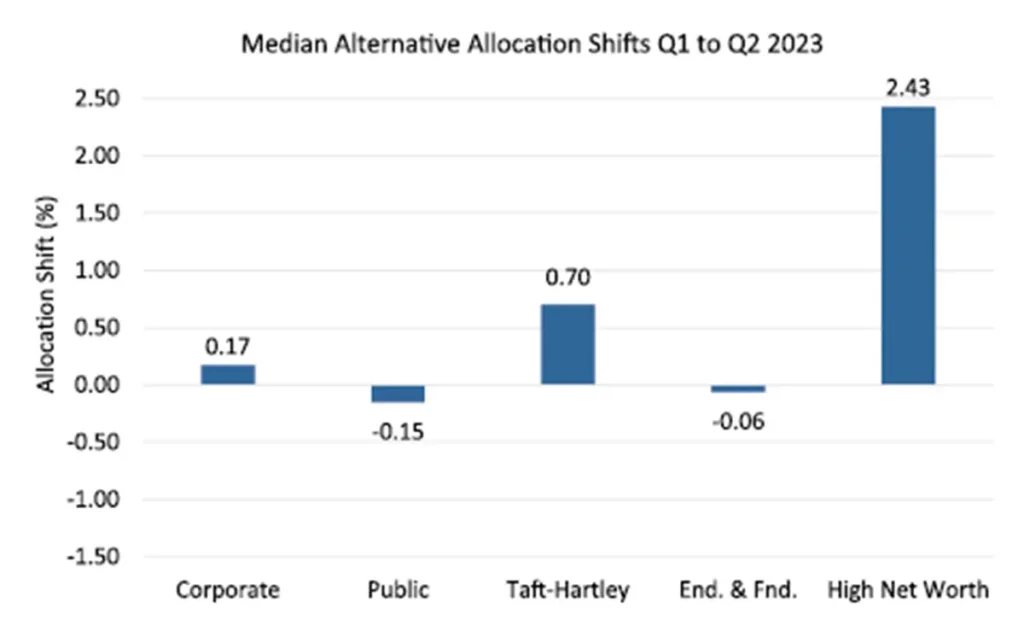 - High Net Worth and Taft-Hartley plans have shifted assets into the alternative asset class in Q2 2023.