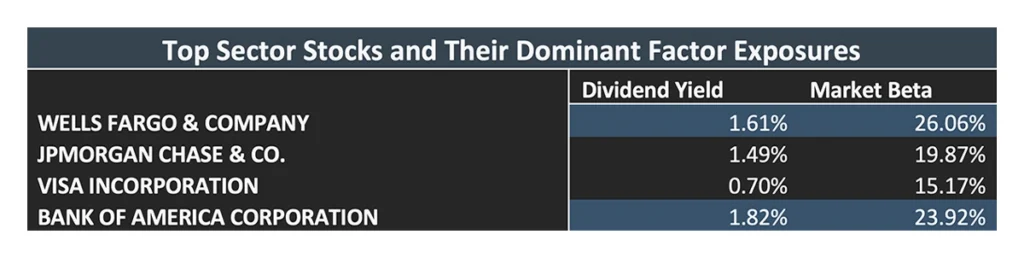 The key contributors to the U.S. financial sector include JPMorgan Chase & Co., Wells Fargo, Visa Inc. and Bank of America. In December, Wells Fargo and Bank of America posted high dividend yields driven by strong profitability, higher interest rates boosting net interest margins, and their consistent capital returns, while their earnings’ sensitivity to broader market and economic conditions also contributed to a high Market Beta.