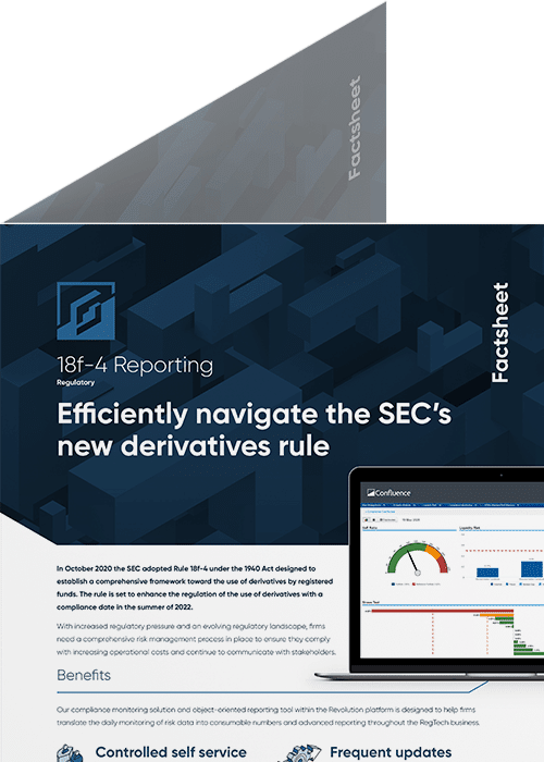 Revolution is an integrated scalable system that translates daily monitoring of risk into consumable numbers and advanced reporting, an essential component to your compliance intelligence and risk management strategy. Our broad support helps you comply with multiple global regulatory frameworks, whether you manage or service UCITS, alternatives, or SEC 40 Act funds.