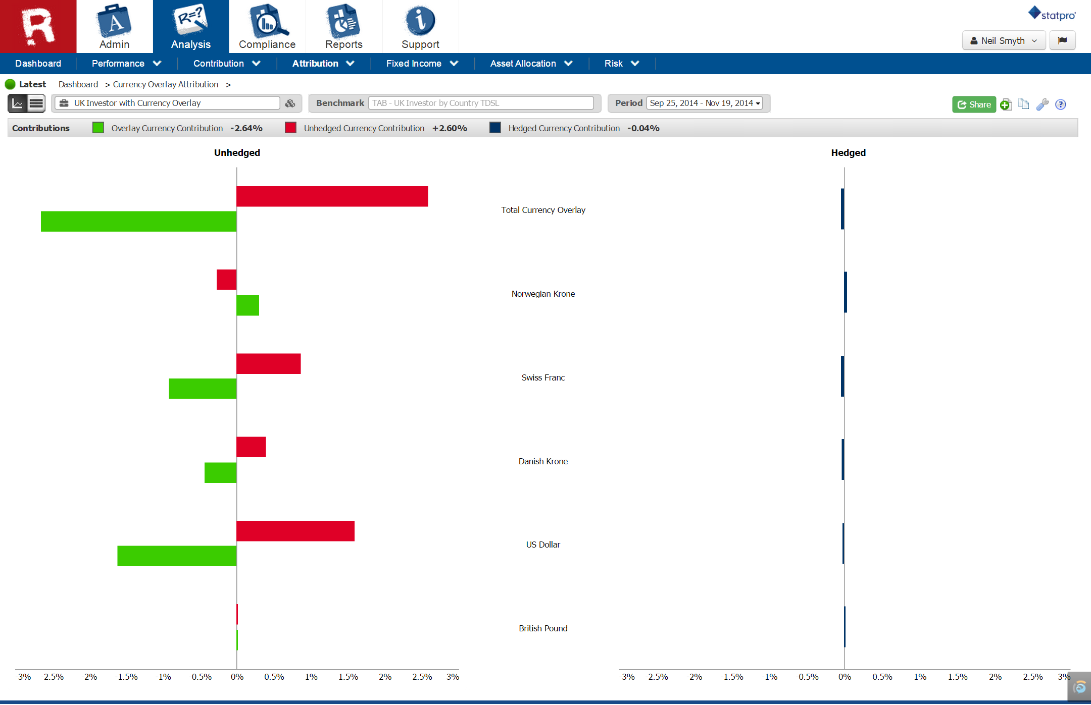 We’ve added new equity attribution analysis including top down single and multi-level attribution models with advanced currency overlay. We have also added currency effects and a new screen to show the new currency overlay analysis. Finally, we have further enhanced our classification and benchmark management features.