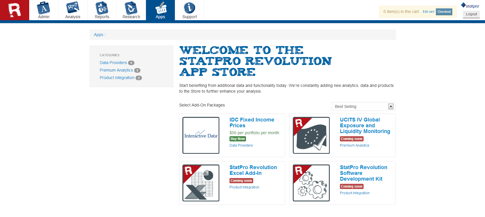 StatPro Revolution App Store: Today, developers and 3rd party data providers can offer their products to users within StatPro Revolution. This month we’re introducing Interactive Data (IDC) prices for fixed income securities. One of IDC’s many services is bond pricing and valuation. IDC prices are now available for bonds in StatPro Revolution portfolios on a paid subscription basis.