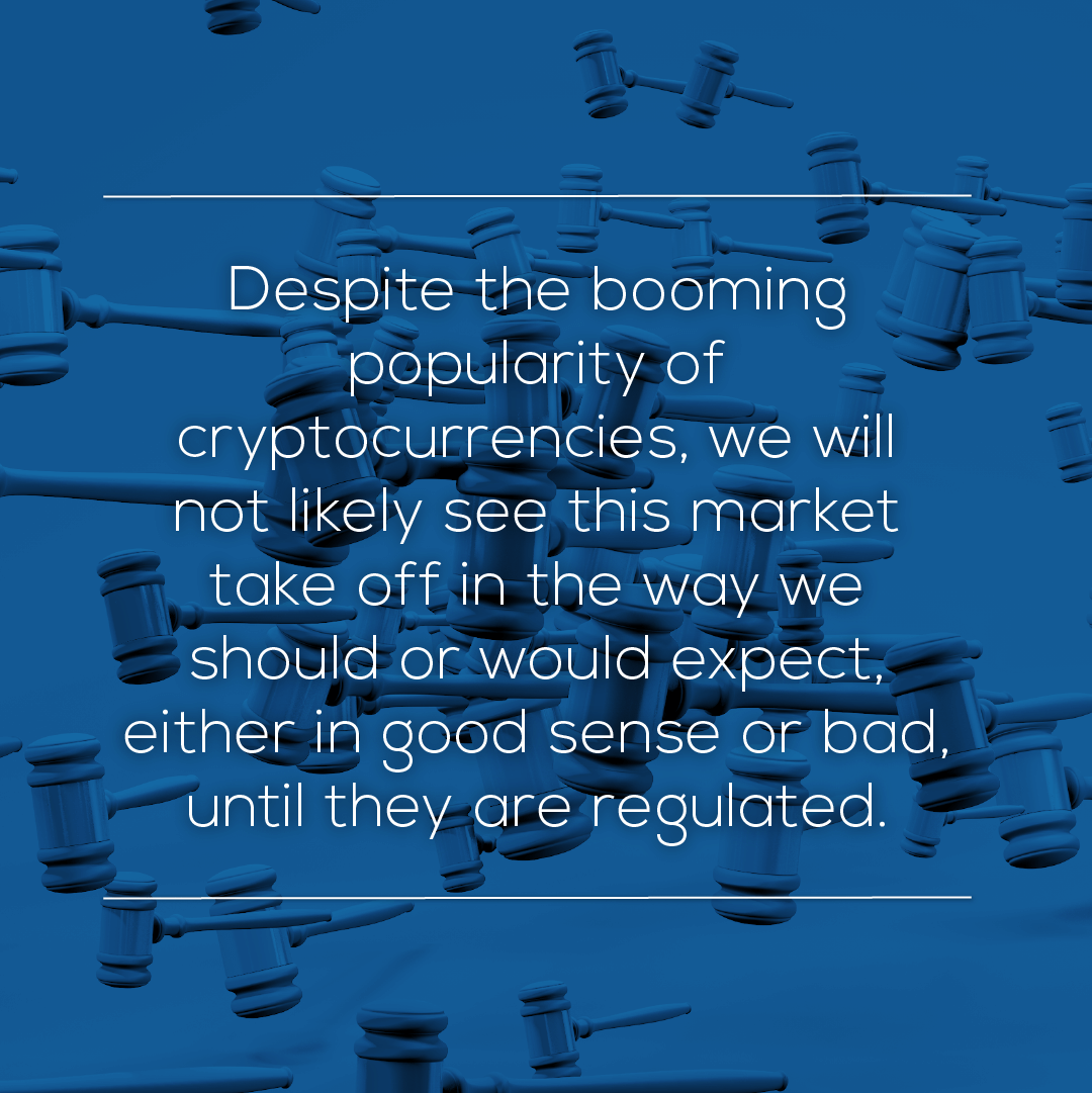 Despite the booming popularity of cryptocurrencies, we will not likely see this market take off in the way we should or would expect, either in good sense or bad, until they are regulated. Take the launch last year of Europe’s first Bitcoin mutual fund. Even this is classified as an alternative investment fund, is not traded on an exchange and does not fall under the European mutual fund structure known as UCITS.