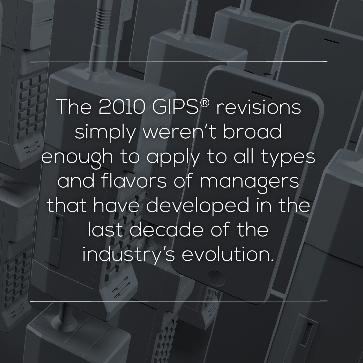 Ultimately, the GIPS® 2020 revision aims to incorporate all the technological innovations, new regulations and market developments over the past ten years while rectifying, clarifying and adjusting the current body of standards to be effective to the widest universe of managers possible. The 2010 GIPS® revisions simply weren’t broad enough to apply to all types and flavors of managers that have developed in the last decade of the industry’s evolution.