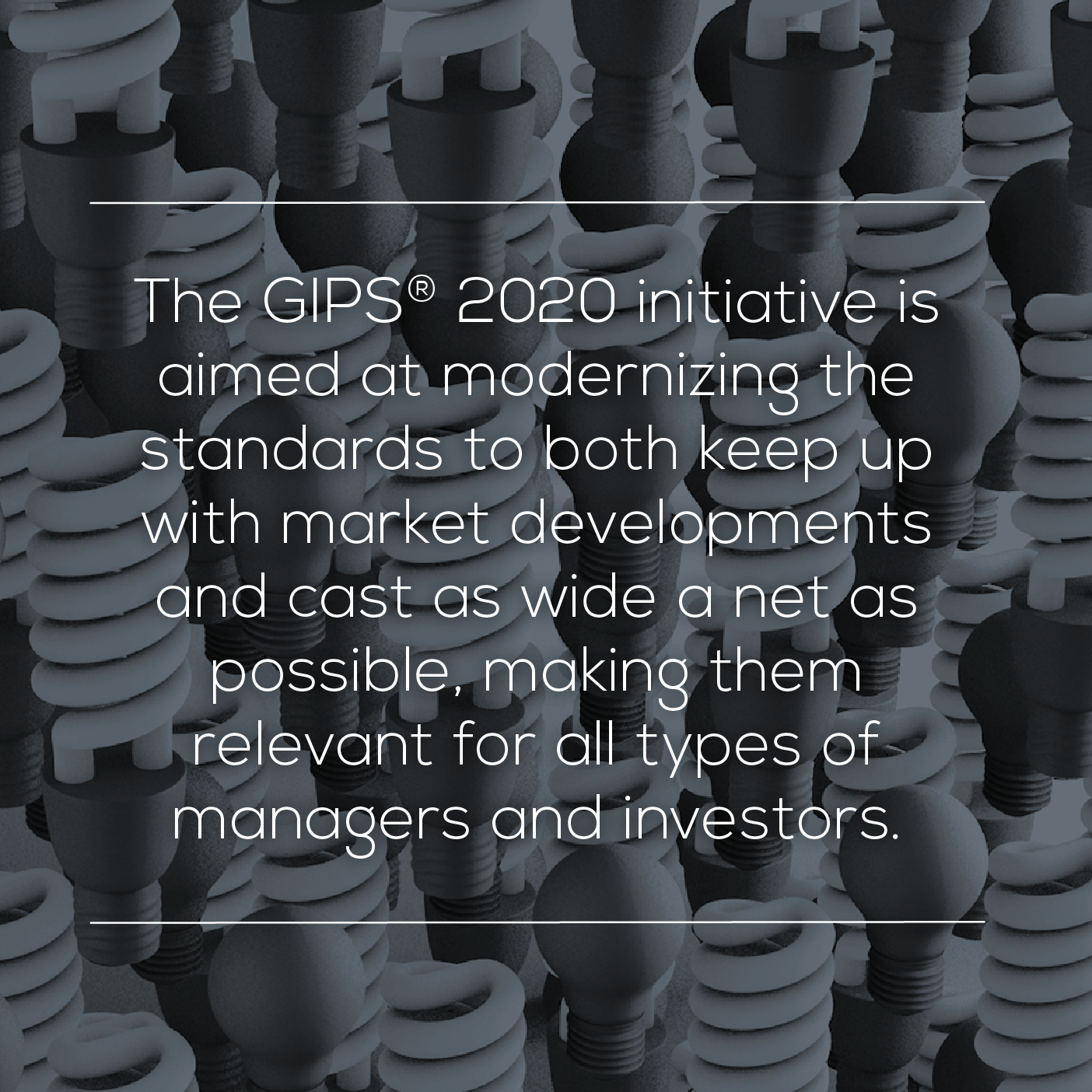 In investment management, one set of industry standards, the Global Investment Performance Standards, or GIPS®, is set for a revision in 2020. GIPS® is the latest evolution in investment management industry-driven standards, which began in 1987 when the Association of Investment Management (AIMR) unveiled a voluntary set of North American guidelines for investment performance reporting. Later, the standards were elevated to a global level when the CFA Institute created GIPS® in 1999. Following the financial crisis, an updated version of GIPS® was introduced in 2010.