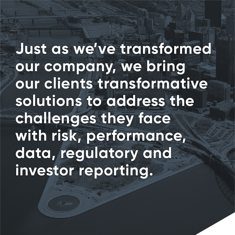 Just as we’ve transformed our company, we bring our clients transformative solutions to address the challenges they face with risk, performance, regulatory and investor reporting. When we collaborate with our clients, as partners, it’s not just about checking boxes to ensure compliance or to “get things out the door”, it’s about creating exceptional value for these firms and the clients they serve.