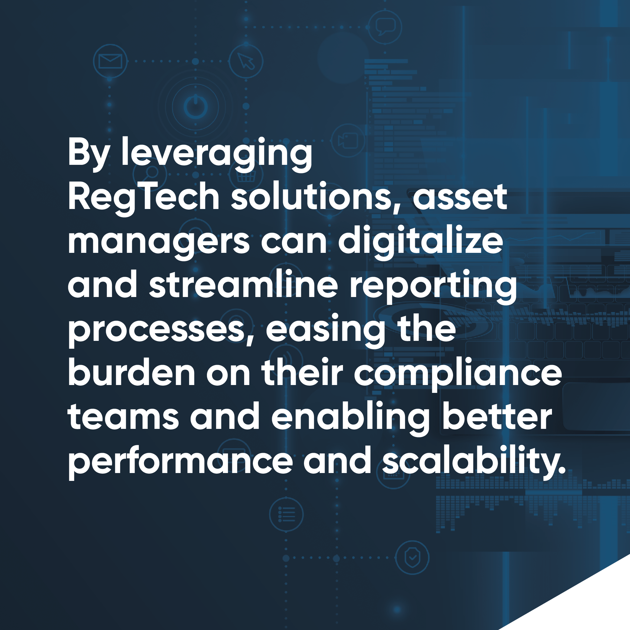 Manually sifting through massive quantities of data to create standardized reports isn’t a tenable situation. The sheer volume of reporting requirements means errors are inevitable, and data automation is the only solution. By leveraging RegTech solutions, asset managers can digitalize and streamline reporting processes, easing the burden on their compliance teams and enabling better performance and scalability. This kind of straight-through processing enables a higher level of nimbleness and scalability as this era of regulatory uncertainty continues.