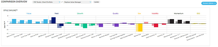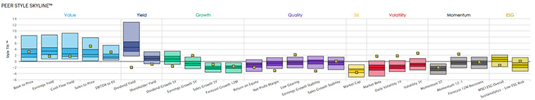 Using our best-in-breed Style Skyline™ you can identify the fund manager’s style exposure by selecting from a list of 130+ individual factors, including ESG.