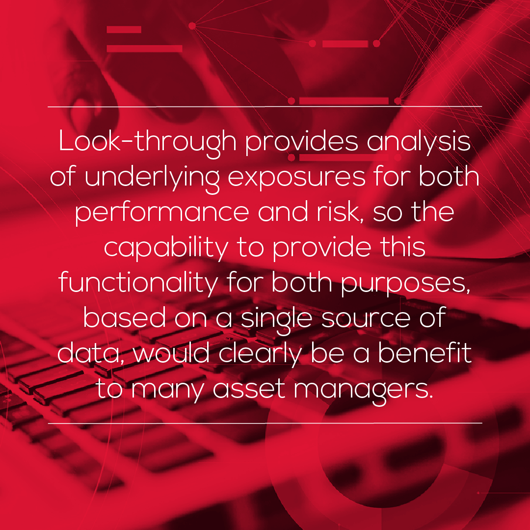 Look-through provides analysis of underlying exposures for both performance and risk, so the capability to provide this functionality for both purposes, based on a single source of data, would clearly be a benefit to many asset managers.